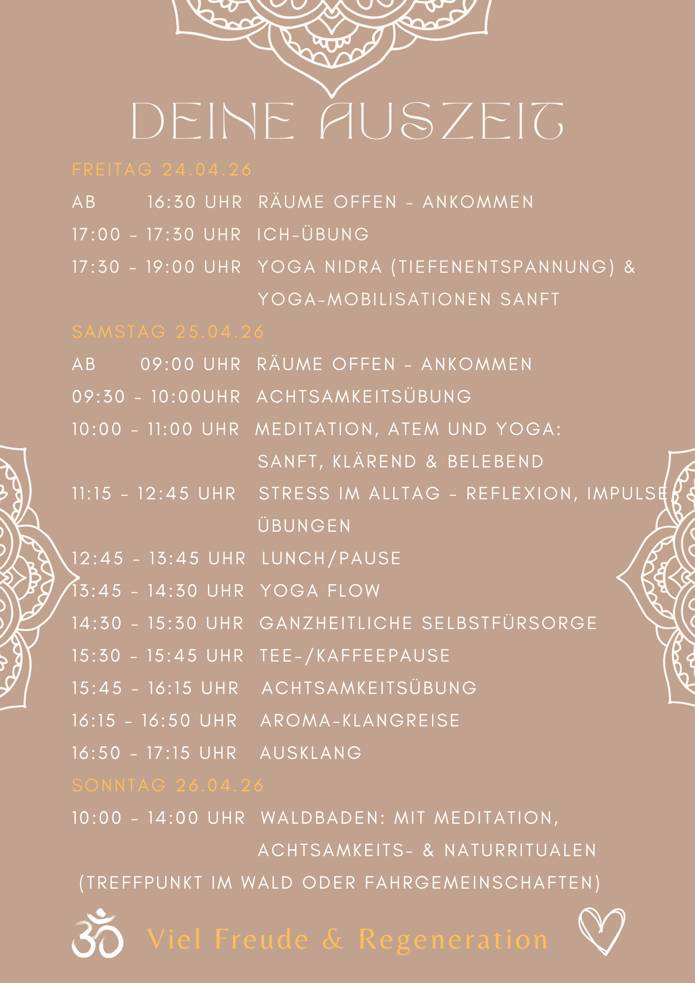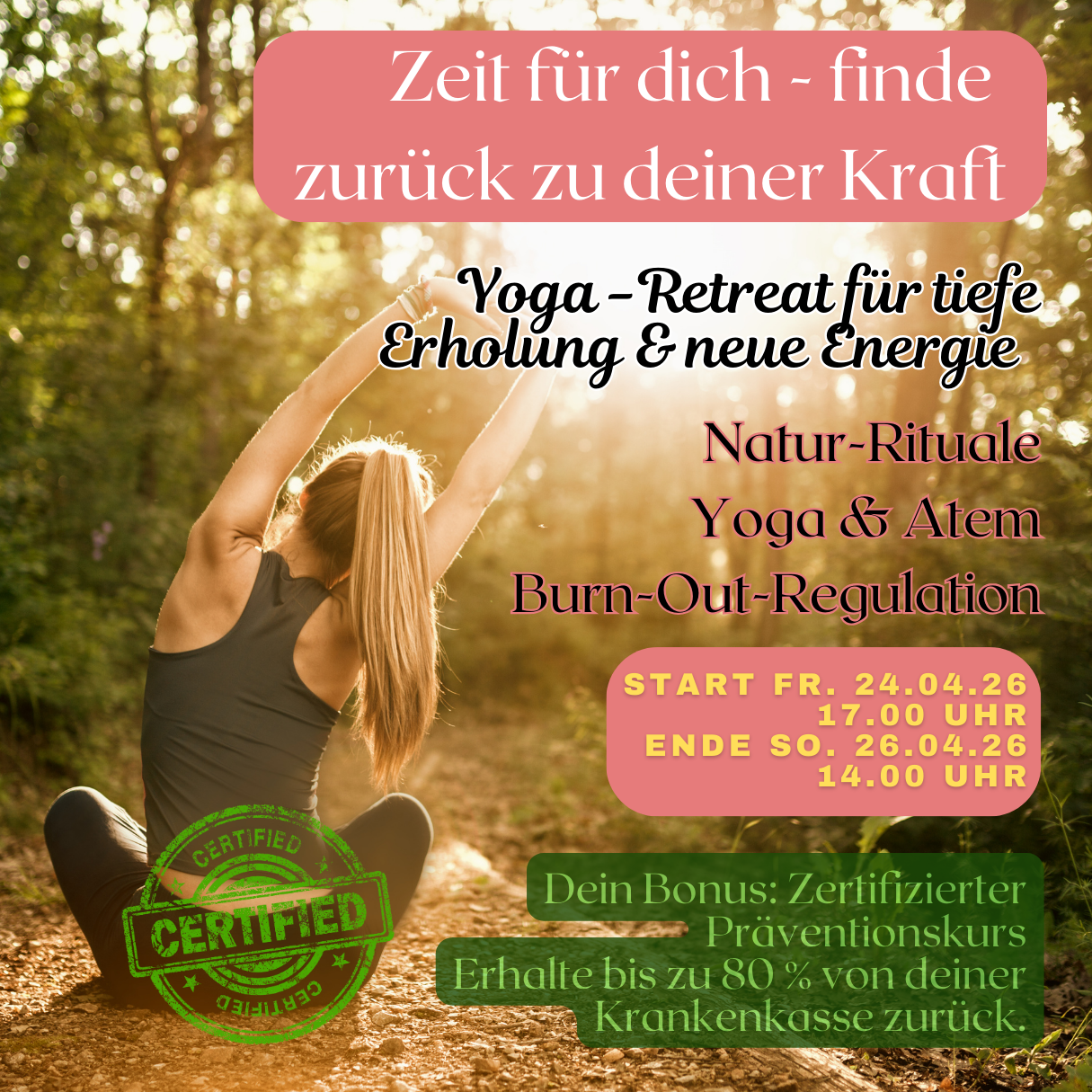 Nimm dir Zeit für DICH. Sichere dir einen der wenigen Plätze. Max. 12 Teilnehmer