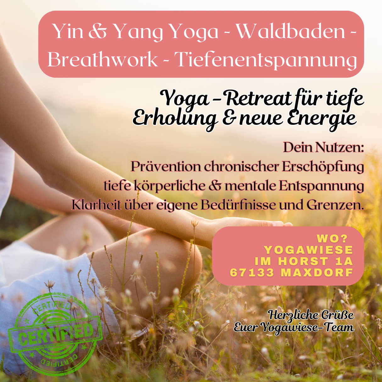 Anmeldung zum Yoga: info@yogawiese.de, 0176 – 21 51 59 00